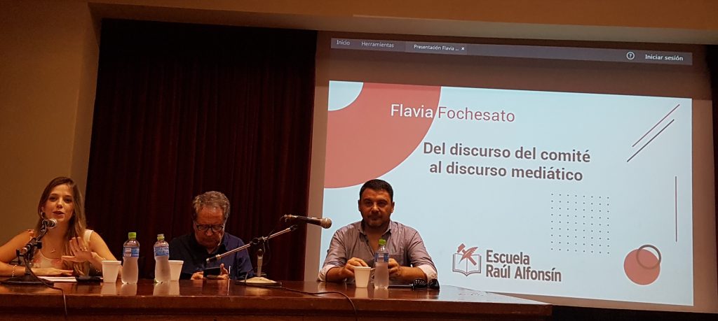 El panel de “Comunicación política y medios”, estuvo conformado por tres panelistas que hicieron/hacen de la comunicación su campo de actividad profesional. Flavia Fochesato fue la encargada de iniciar la ronda de exposiciones, estableciendo una clara diferenciación entre las lógicas comunicativas del “comité partidario” y de los “medios de comunicación”. Señaló que para transmitir de modo eficaz un mensaje a través de los medios de comunicación, los cuadros políticos deben ser conscientes de la especificidad inherente a los mismos (escaso tiempo, dificultad para captar la atención volátil del electorado, público heterogéneo y desinteresado en cuestiones políticas); abogando de esa manera por un grado mayor de profesionalización en el ejercicio de la comunicación política. Federico Polak continuó con el ciclo de exposiciones, advirtiendo que más allá de que los ciudadanos del siglo XXI se encuentran inmersos en sociedades digitales, el candidato sigue siendo el primer y gran comunicador, y como tal, su rol es irremplazable. Desde ese lugar rememoró la figura de Raúl Alfonsín como comunicador y conductor, capaz de guiar al radicalismo por la senda de la socialdemocracia. Al finalizar su intervención, Polak se mostró muy crítico de la situación presente del Partido Radical, acusando a la agrupación de haber girado hacia la derecha. La exposición de Gustavo Córdoba se abocó a varios tópicos. El consultor comenzó discutiendo la relación entre los términos “comunicación” y “política”, ya que, si bien resulta claro que la actividad política no puede ser reducida a comunicación, tampoco se puede negar que la dimensión comunicativa es parte constituyente del quehacer político, esto es, que comunicar es un acto estrictamente político. Por ello abogó por la profesionalización del ejercicio de la comunicación política. Luego, analizó con sutileza el sistema político argentino contemporáneo; y en lo que respecta al radicalismo, se enfocó en diseccionar las complejidades y peligros del vínculo que mantiene de facto con el PRO, debido a que esta última agrupación hoy en día cuenta con liderazgos fuertes, visibilidad pública, y ha logrado diseminarse estructuralmente por todo el país.