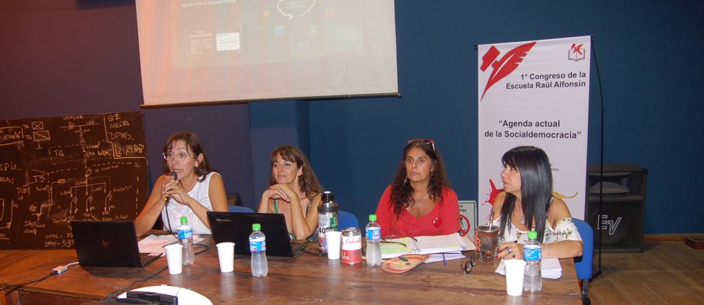 En cada uno de los siguientes ocho paneles se trabajó sobre una cuestión temática, que los miembros de la Escuela hemos considerado necesario incluir en el marco de una agenda socialdemócrata. El primer panel, “Género y Economía Feminista”, fue indudablemente uno de los más aprobados por los asistentes. La primera disertante fue María Cecilia Magnano, quien expuso sobre los aportes del campo de estudios denominado “economía feminista”. Afirmó que a partir del señalamiento de que los individuos siempre están dotados de cualidades específicas como género y edad, la economía feminista se aboca a analizar la desigualdad efectiva existente entre hombres y mujeres, y entre mujeres económicamente más favorecidas y menos favorecidas. Desigualdad que en gran medida está originada en el indispensable trabajo de cuidados, que recae fundamentalmente en las mujeres, generándoles un menoscabo significativo en su disponibilidad de tiempo libre, y disminuyendo por tanto sus posibilidades laborales y formativas. María Teresita Villavicencio centró su exposición en las desigualdades de género en el marco de la actividad política, utilizando su trayectoria personal como caso testigo. Dio a entender que, para el logro de una igualdad de género real, no basta con el compromiso del radicalismo de sostener una política de género; sino que se requiere el involucramiento efectivo de la mujer en la actividad política: “Una mujer en política cambia la mujer. Muchas mujeres en política, cambia la política”. Mabel Bianco por su parte, abordó la problemática de género desde la óptica de los derechos humanos y la socialdemocracia. A la pregunta fundamental de “¿Por qué somos socialdemócratas?”, la reputada médica contestó que en razón del objetivo, de “garantizar a cada persona el derecho a gozar de todos los derechos humanos”, principio que debe extenderse a todas las orientaciones que escapan al par hombre/mujer heterosexual. Lejos de fórmulas abstractas, Mabel Bianco hizo hincapié en que la paridad de género no se puede lograr sino hay una igualdad estructural real en todo el campo social, incluyendo dimensiones críticas para el desarrollo individual como es el acceso laboral. Cerró el panel la diputada nacional Carla Carrizo, con una exposición enfocada en la situación actual del radicalismo. Advirtió sobre la disonancia que a su criterio existe, entre las banderas socialdemócratas que el centenario partido quiere expresar, y la percepción que la ciudadanía tiene del mismo. Reclamó una mayor participación femenina en el seno del radicalismo, asociándola con un recambio generacional que le asigne a los jóvenes y a las mujeres los lugares políticos que les corresponde.
